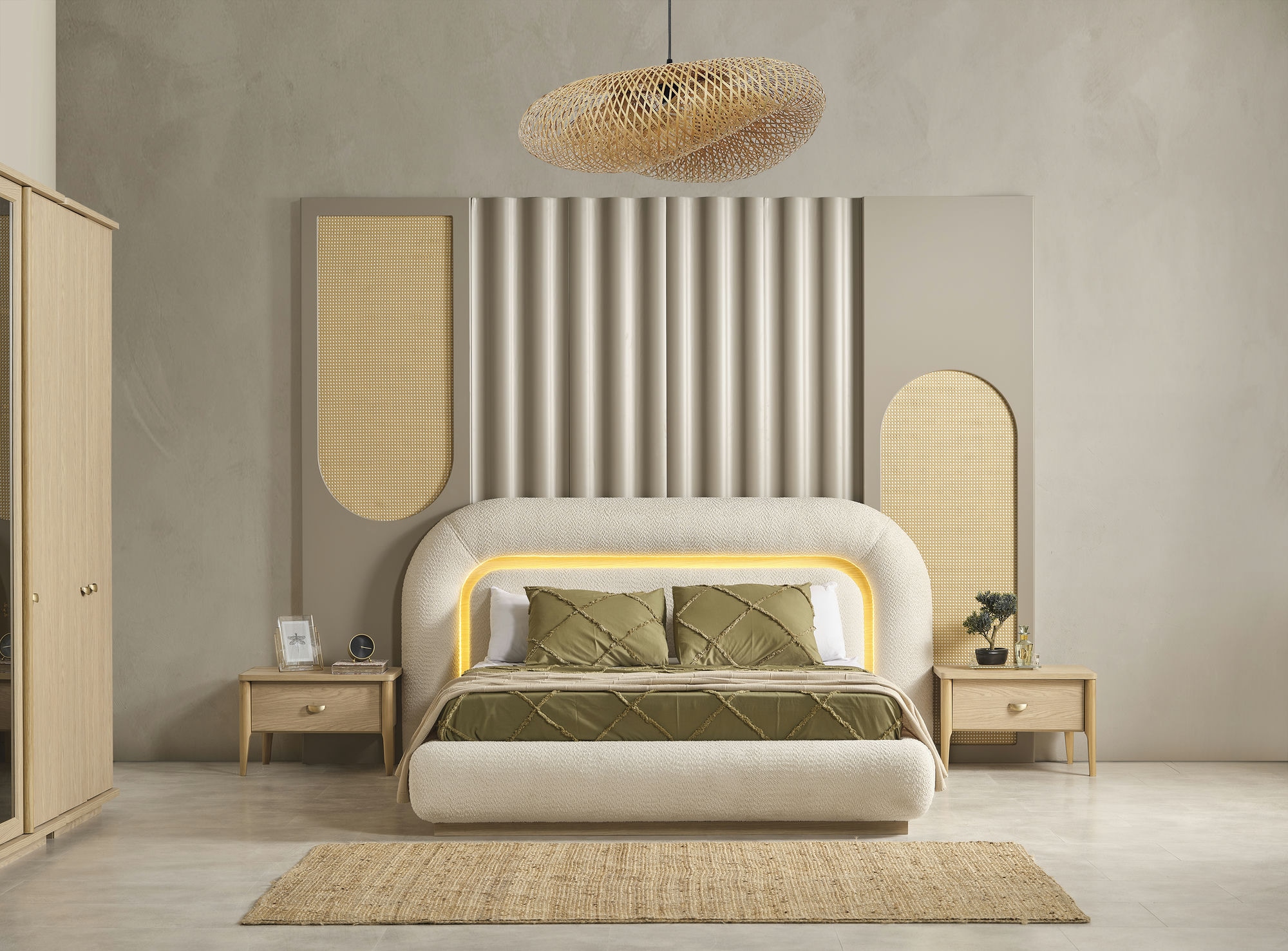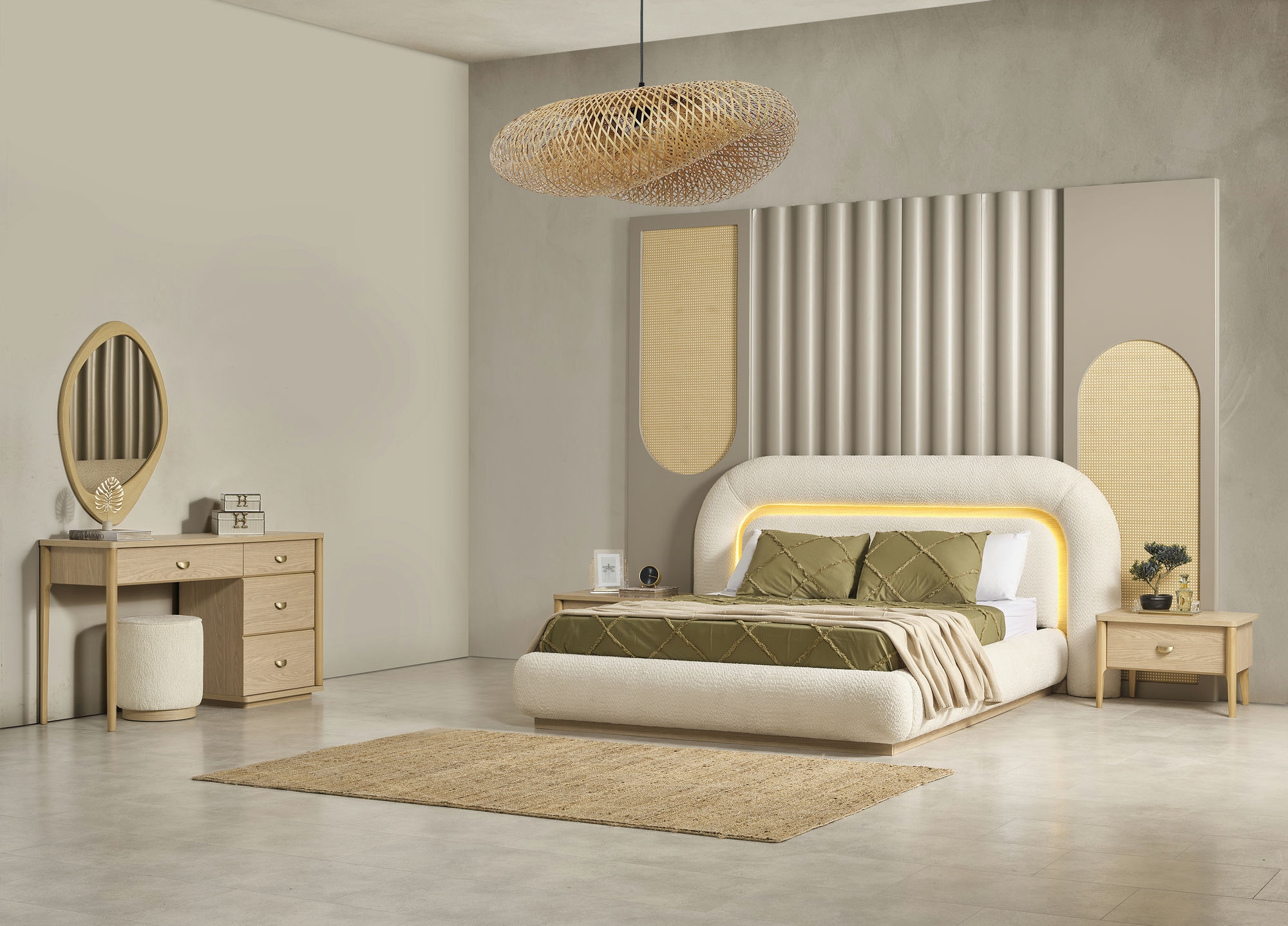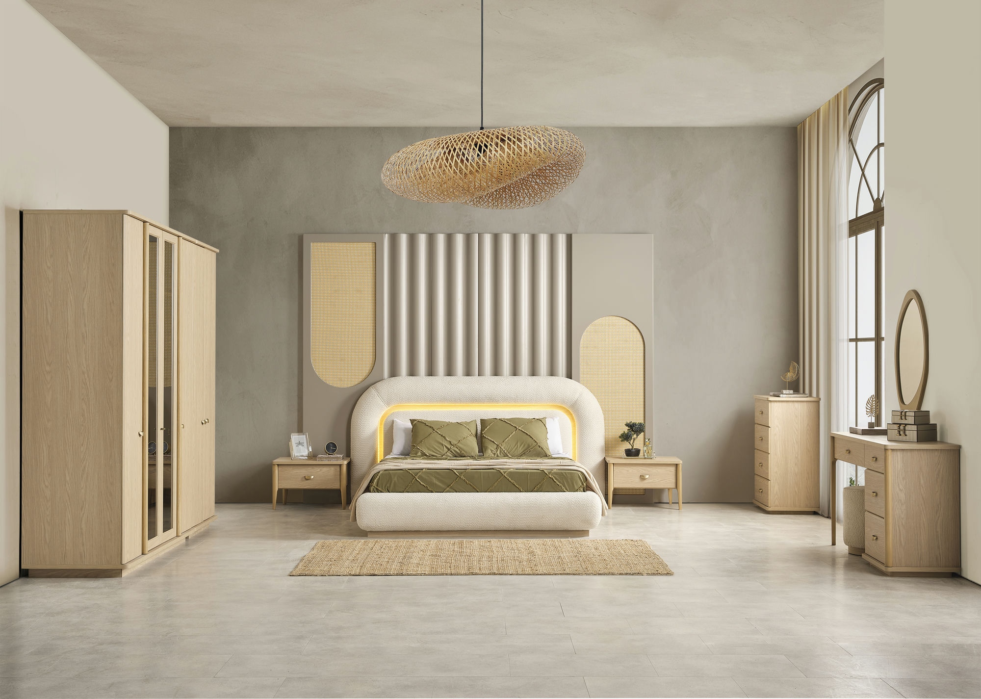 Takım İçeriği; Dolap, Karyola(Bazalı), Şifonyer, Şifonyer Aynası, 2 Adet Komodin